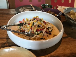 農園では、ご予約のみで園内農家レストランにてランチを提供しています。 農園で採れたての食材とかわいい動物達にふれあい楽しいひと時をお過ごし下さい。 お食事は1500円~ご予約の際ご相談ください。 社員食堂からスタートした農家レストランですので、席数に限りがございます。(日曜定休)