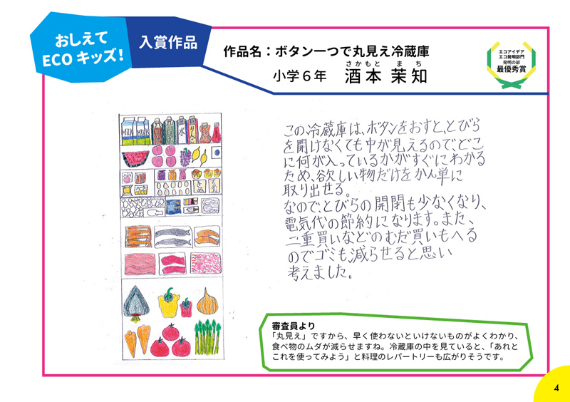 「おしえて ECO(エコ)キッズ!COOL CHOICEアイデアコンテスト」ご応募ありがとうございました!応募してもらった349作品の中から、エコアイデア・エコ発明部門、おもしろエピソート部門合わせて29作品と入選作品56作品をハンドブックへ掲載しました。ぜひご覧ください!