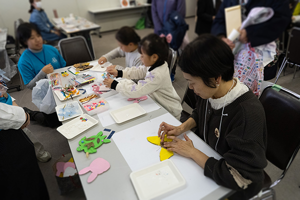 子どもたちは、お金とエコの話を学んだ後、それぞれの希望の団体でおしごと体験を行い、各団体でお仕事に取り組んだのち、振り返りを行ってから、「お給料」にあたる「奈良市ポイント」をもらって終了。ポイントを使ってブースでの有料体験プログラムに参加をしていました。