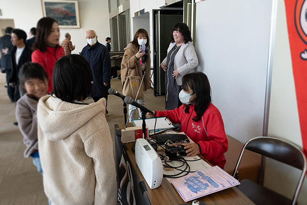 表彰式の行われる市民ホールのロビーでは、クイズや昔遊びなどの他、脱炭素の技術紹介、牛乳パックや靴下端材を利用したクラフトのほか、エコな暮らしに関するインタビューなどを行いました。また、絵本の回収ではたくさん方々から約100冊の絵本をお持ちいただいたため、その場で持って帰りたい方にお渡しするなど循環の場が生まれていました。